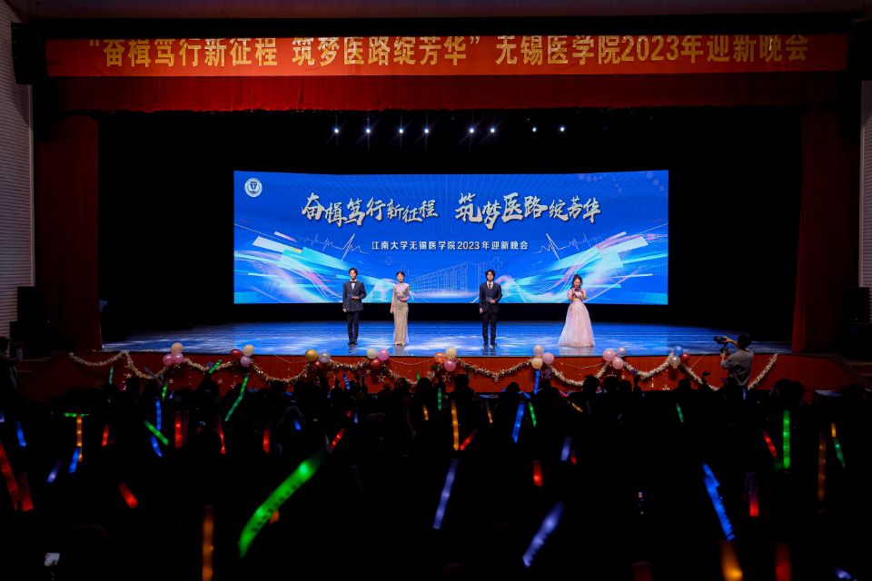 12月17日晚,开元(中国)官方网站登录界面圆满举办“奋楫笃行新征程 筑梦医路绽芳华”2023年迎新晚会。江南大学党委常委、副校长、无锡医学院院长马鑫,无锡医学院党委书记向琪,江南大学附属医院院长高宇峰,无锡医学院党委副书记副院长包羽,医学院副院长奚晓岚,医学院副院长柴高尚,江南大学附属中心医院副院长瞿甦,江南大学附属医院教育处处长徐德武,江南大学附属中心医院教育处处长、全科医学科副主任(主持工作)姜宇,江南大学附属医院教育处副处长李蕾,江南大学附属医院工会主席周蓉,无锡医学院护理系主任、工会主席蒋玉宇,附属医院与学院教师以及学院近千名学生共同参加此次晚会。