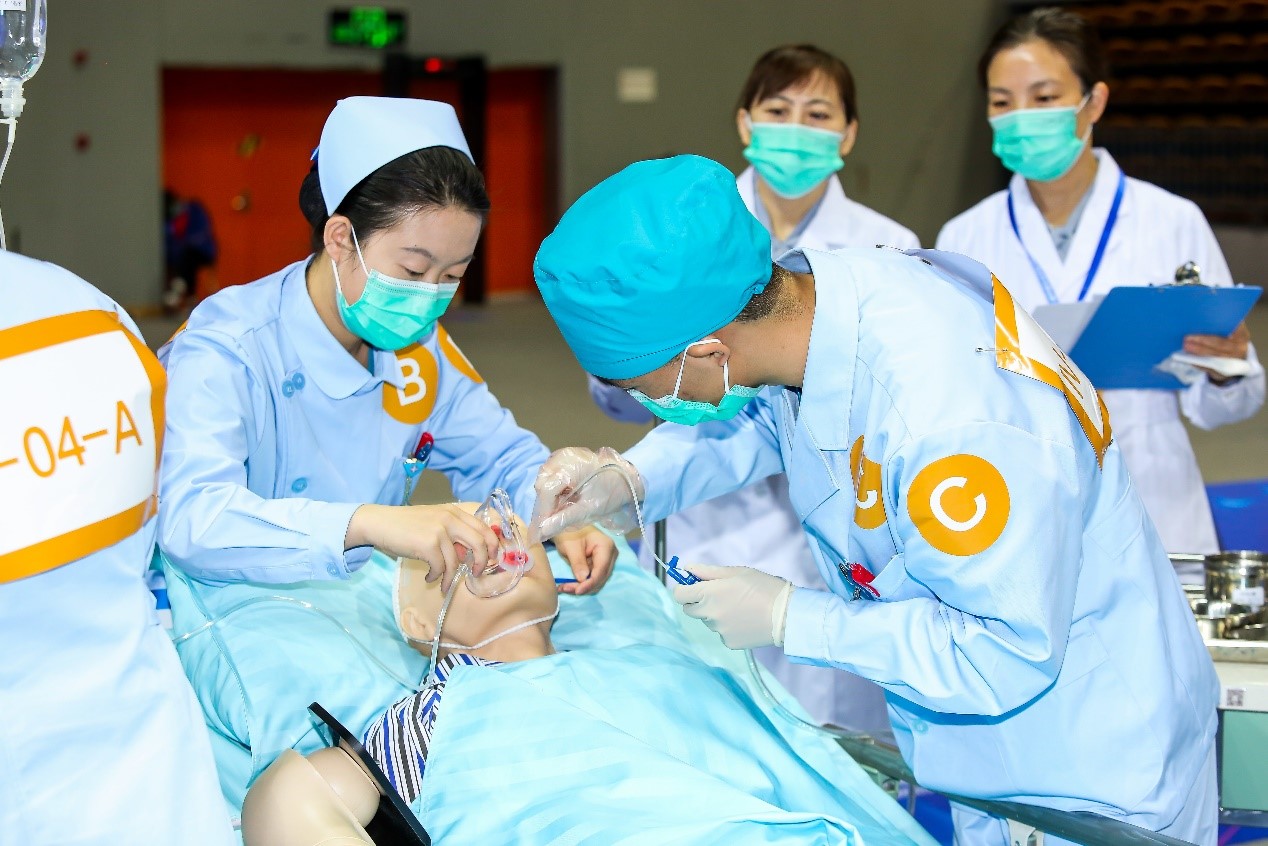 本届大赛在原有临床医学专业五年制赛道和临床医学专业八年制赛道基础上增加了中医学、预防医学和护理学专业赛道,呈现出新时期医学教育中医西医并举、医疗护理协同、临床公卫融通的丰富内涵。大赛由教育部主办、教育部高等学校护理学专业教学指导委员会指导、徐州医科大学护理学院承办,共吸引了山东大学、复旦大学、上海交通大学、同济大学、厦门大学、南京医科大学、苏州大学、江南大学等来自六省一市共62所高等护理院校参加,比赛内容涵盖基础护理学、急危重症护理学、内科护理学、外科护理学、妇产科护理学、儿科护理学、健康评估、老年护理学、社区护理学等。在对护理本科生的基础理论、基本知识、基本技能评估基础上,突出评判性思维、健康评估、专科护理技能、临床危重症护理能力的比拼,同时对人文关怀精神和团队合作意识提出了较高的要求。