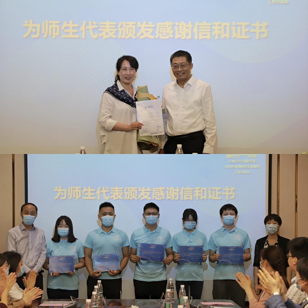 座谈会期间,陈卫校长还为每一位教师志愿者颁发感谢信,与会领导为学生志愿者代表颁发志愿者证书。