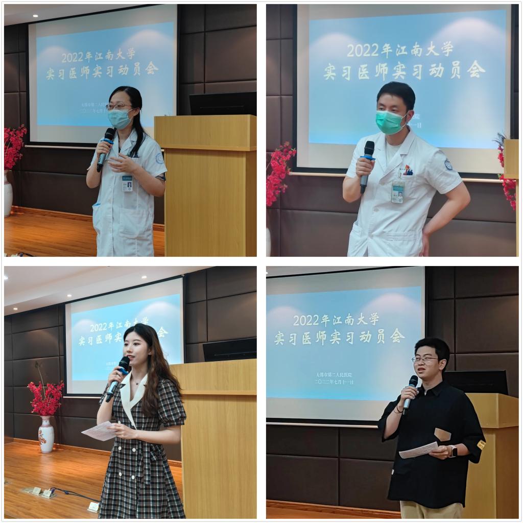 无锡市第二人民医院进点实习培训会在二院北院区举行,二院科教处处长赵霞主持会议。首先,夏加增副院长致欢迎辞,介绍了二院百年历史,期待同学们在二院获得丰富的医学知识和难忘的人生经历。而后,实习带教教师代表分享实习经验,提出实习是对所有科室基本知识基本技能全面了解的阶段,同学们应该保持热情保持好奇,积极练习各项临床基本操作,注重临床实践。接着院领导为实习生颁发实习用品和医院纪念品,而后实习生代表上台发言,承诺将抓住每一个学习和锻炼的机会,用实际行动践行“健康所系,性命相托”的誓言。最后,赵鹏副院长再一次详细解读2022年临床实习轮转计划。