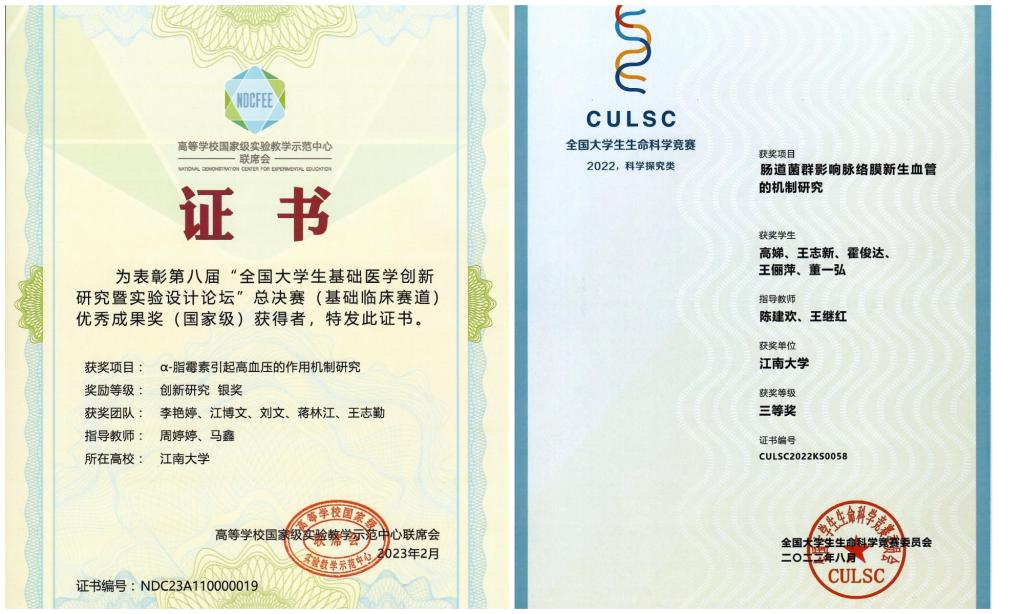 学院成立大学生创新创业训练与学科竞赛指导中心,建立专家库,组织和引导学生参加各级各类学科竞赛。近十年来医学院本科生获全国大学生基础医学创新论坛暨实验设计大赛二等奖2项、三等奖3项;全国大学生生命科学竞赛三等奖3项;江苏省“互联网+”大学生创新创业大赛一等奖1项、三等奖1项;“创青春”江苏省大学生创业大赛银奖1项;中国大学生医学技术技能大赛华东赛区二等奖1项、三等奖2项、单项奖2项;全国大学生基础医学创新研究暨实验设计论坛东部赛区二等奖1项、三等奖2项;全国大学生生命科学竞赛江苏赛区二等奖2项、三等奖1项。