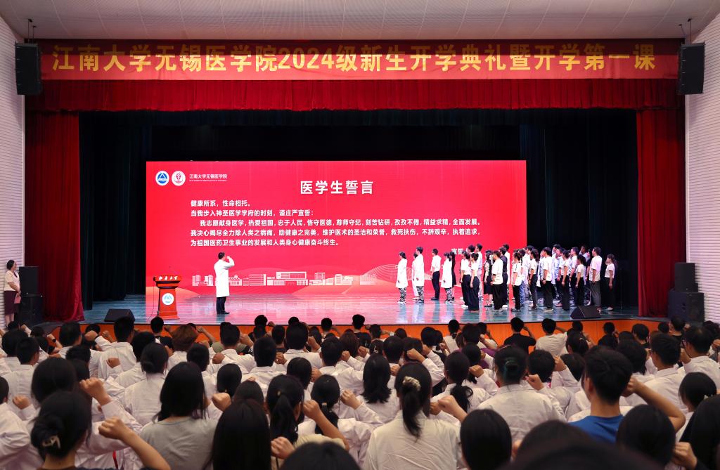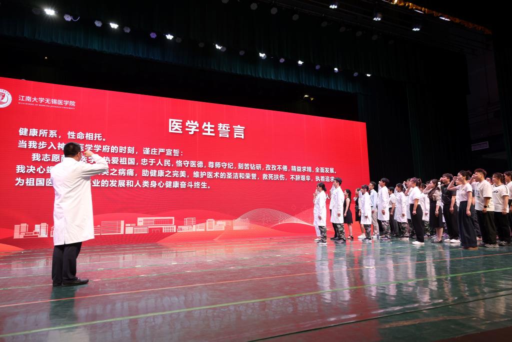 随后,江南大学博士生导师、附属医院核医学科主任郁春景领誓医学生誓言。