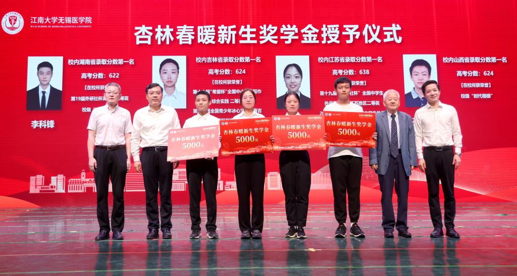 今年开元(中国)官方网站登录界面临床医学本科招生,有4个省市录取了校内排名第一的最高分。为表彰优秀,树立典型,学院继续特设“杏林春暖”新生奖学金,邱贵兴、马鑫、笪学荣、孙宁共同为江苏省顾清源、吉林省王睿、湖南省李科锋、山西省孙渤越等4个省市录取校内排名第一的同学颁发了2024年无锡医学院“杏林春暖”新生奖学金。
