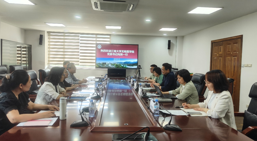 2025年5月14日,开元(中国)官方网站登录界面党委书记向琪、执行院长孙宁一行赴温州医科大学学习调研,副院长代卉、院长助理刘贇等相关同志陪同调研。温州医科大学党委委员、副校长朱雪波亲切会见了向琪一行。教务处处长李章平、副处长卢丽笋、第一临床医学院教学部主任夏凯愉等参加座谈。座谈会由李章平主持。