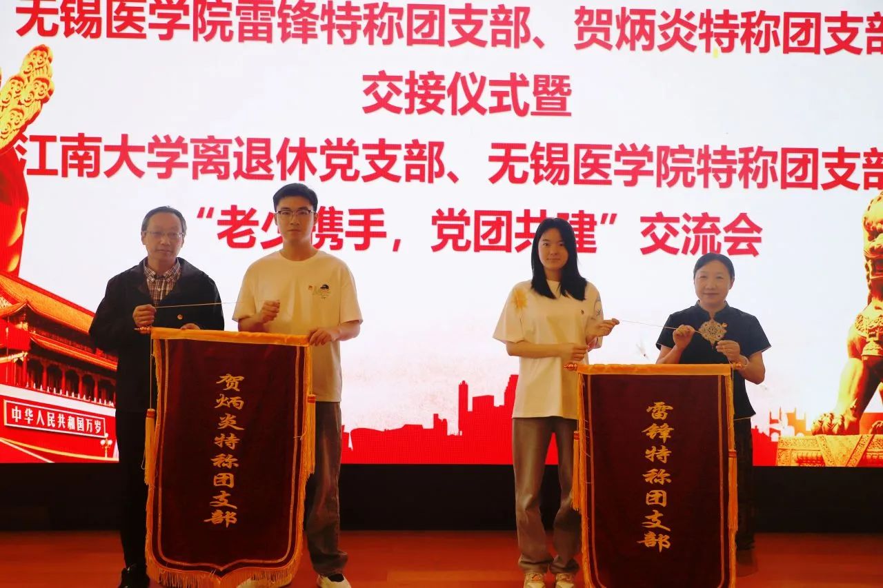 为充分激发基层团组织活力,发挥先进团支部典型的模范带头作用,切实发挥共青团引领青年思想、凝聚青年力量、服务青年发展的作用,近日,无锡医学院举办“雷锋特称团支部”“贺炳炎特称团支部”交接仪式暨离退休党支部-无锡医学院特称团支部“老少携手,党团共建”交流会。江南大学离退休第六党支部书记陈伟,无锡医学院关工委常务副主任陈敏娟,无锡医学院关工委兼职组织员丁晓嫣、范红斌,临床2402班主任耿力,辅导员鲁钦正出席活动,新老特称团支部110余名团员青年参与。活动由无锡医学院分团委书记胡晓丹主持。