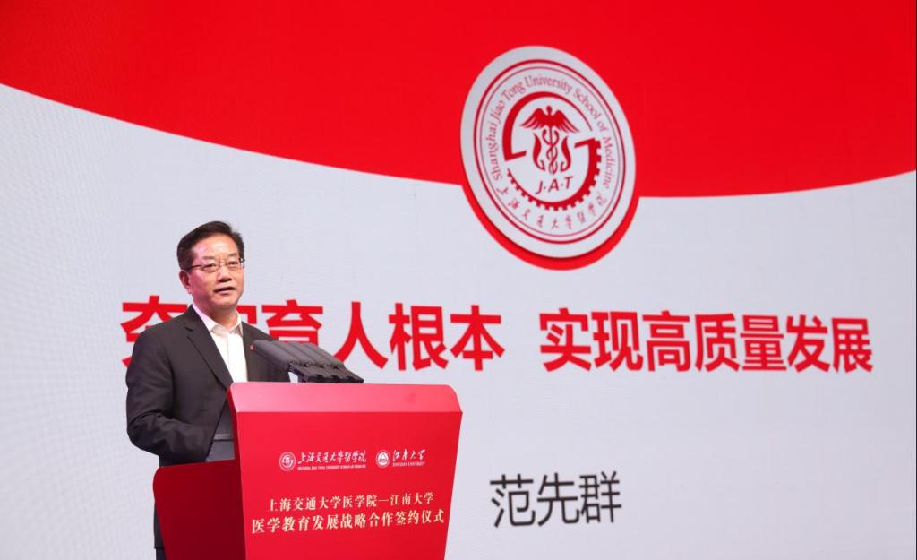 范先群首先对江南大学办学成果予以充分认可和肯定,并向全体师生介绍了上海交通大学医学院的发展历程,展示院校学科发展和人才培养方面的卓越成果。