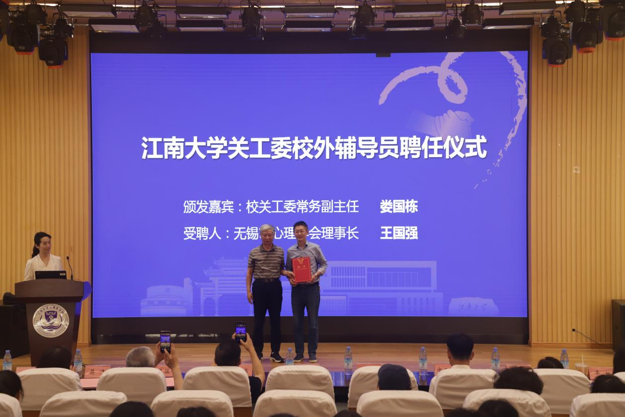 娄国栋为王国强颁发江南大学校外辅导员聘书