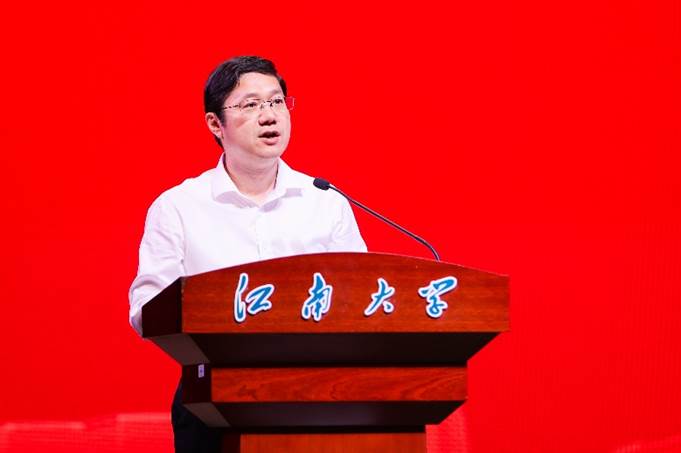 马鑫副校长发表主旨讲话。他首先热烈欢迎新同学的到来,并为2025年医学院生源质量与办学层次的提升感到欣慰。马鑫副校长系统阐述了学校在“双一流”建设背景下大力发展医学学科的坚定决心,强调了市校共建机制与高水平合作平台为学院发展提供的强大动能。他表示,学院已构建起集优质教学、科研培养、临床实践于一体的全方位卓越成才支持体系,必将助力每一位学子成长成才。他殷切期望新生们夯实专业根基,勇攀创新高峰,涵养医者仁心,在江南大学书写无悔的青春华章,成为不负时代与人民期望的卓越医学人才。