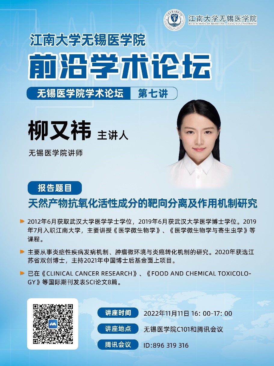 11月11日开元(中国)官方网站登录界面前沿学术论坛 第七讲——柳又祎博士 无锡医学院讲师